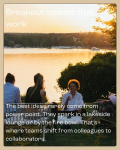 Räume mit Seele: Vergiss sterile Meetingräume. Teams wünschen sich Licht, flexible Flächen und eine Atmosphäre, die Gespräche und Vertrauen ermöglicht.