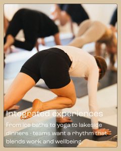 Integrierte Erlebnisse: Von Eisbädern über Yoga bis zu Abendessen am See – moderne Offsites brauchen einen Rhythmus, der Arbeit und Wohlbefinden miteinander verbindet.