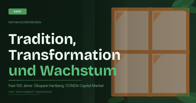 KAPO steht seit 1927 für hochwertige Holzfenster aus der Steiermark. Verwurzelt im Naturpark Pöllauer Tal, verbindet das Unternehmen handwerkliche Tradition mit konsequenter Weiterentwicklung. Mit dem Umzug in den Ökopark Hartberg hat KAPO den größten Schritt seiner Geschichte gesetzt und rund 10 Millionen Euro in eine neue, nachhaltige Produktionsstätte investiert. Auf einer ehemaligen Deponiefläche entstand ein ökologisches Vorzeigeprojekt, das zeigt, wie nachhaltige Fertigung heute aussehen kann.