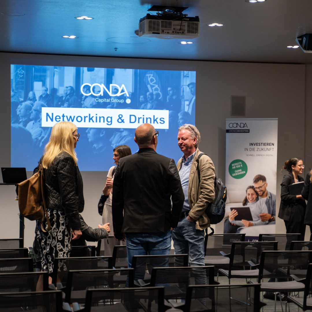 Nach den spannenden Pitch-Sessions konnten unsere Gäste den Abend in entspannter Atmosphäre bei Snacks und Drinks ausklingen lassen, während sie die Möglichkeit nutzten, sich untereinander zu vernetzen und wertvolle Kontakte knüpften. Wir freuen uns, dass wir mit dem Event einen Rahmen für gemeinsamen Austausch zwischen der CONDA Community und Erste Bank schaffen konnten.