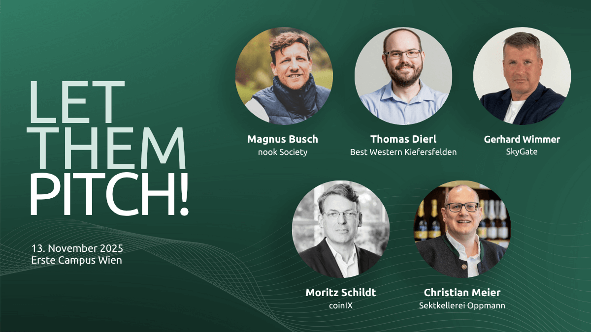 Am 13. November 2025 ist es wieder soweit: Das Pitch-Event „Let Them Pitch“ öffnet seine Türen am Erste Campus Wien und stellt innovative Wertpapieremissionen in den Mittelpunkt. Fünf Unternehmer:innen geben Einblicke in die Kapitalmaßnahmen ihrer Unternehmen – eine einmalige Chance für Investoren und Interessierte, direkt von den Emittenten zu erfahren, welche Möglichkeiten ihre aktuellen Wertpapieremissionen bieten.