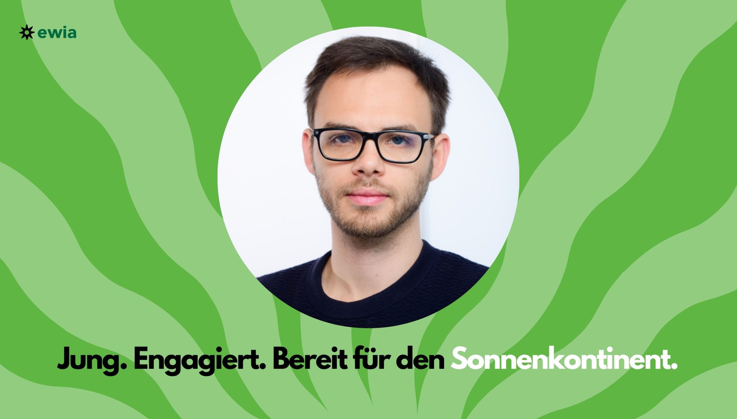 Nicht nur ist er ein überzeugter Anhänger von erneuerbaren Energien, insbesondere von Photovoltaik. Der 26-jährige Münchner begeistert sich auch für Afrika, fremde Kulturen im Allgemeinen und er liebt es zu reisen. Das sind alles sehr gute Voraussetzungen, um bei EWIA die Energiewende auf dem Sonnenkontinent voranzutreiben.